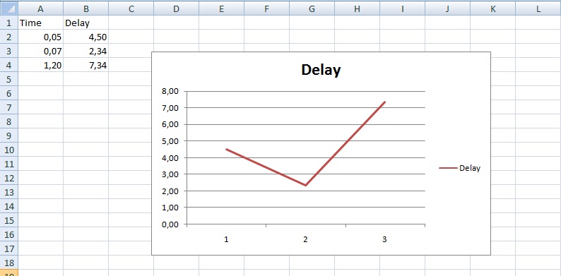 hai impostato solo le y ... sull 'asse delle x hai le celle qua (1,2,3)
