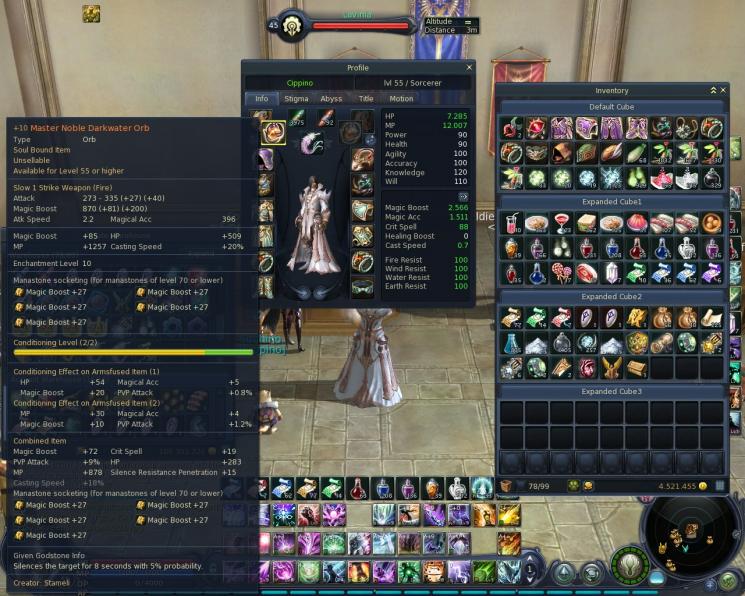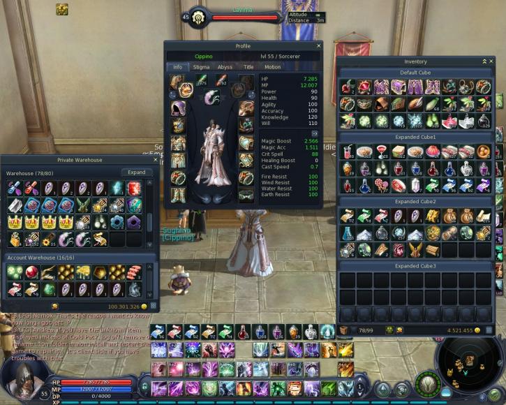 causa inutilizzo vendo account di aion con pg Sorcerer lvl 55 "quasi" full Stormwing ( mi mancano solo i gloves), "quasi" full Abyss 50 (ho 4 pezzi su 5 xke i gloves sono abyss 55) e con 4 pg di inventario pieni di medaglie oggetti oro ecc non so quantificare in milioni ma sicuro oltre i 100 kk di roba.