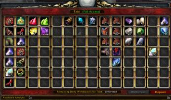 In più su emerald dream ho un PG banca con una gilda e la banca che contiene ormai poche cose venduto tutto tranne robe per enchanting xke lo stavo alzando sul dudu cmq quello che è rimasto è qui sotto: