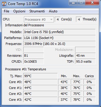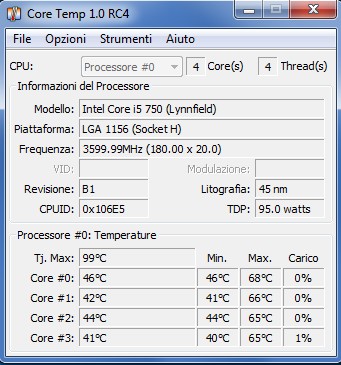 Attualmente ho overcloccato la cpu come in firma, @3,6 ghz da 2,67 di base. Fino a primavera andava ok, nel senso che con Core Temp rilevava max 68° in full load, con una temperatura ambientale di 23° circa.