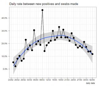 Infatti uno dei dati più interessanti è la % dei positivi sul totale del tamponi effettuati.