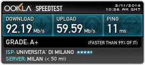 ho fatto altre volte speedtest e a casa segna i valori reali e anche dal politecnico ricordo che vidi valori stellari
