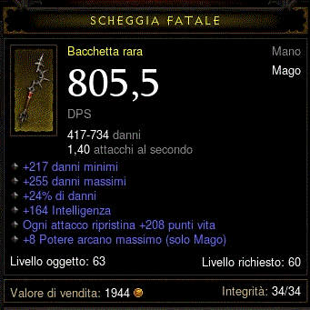Inutile dire che bacchette con dps sopra 800 e stat buone ce ne sono poche, quindi vale molto quella di dryden.