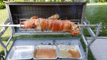 Per i tempi di cottura mi regolo circa 1 ora per ogni KG di maiale, poi dipende da come è preparato, se ripieno qualcosina di più, se è vuoto basta anche un 45 minuti/kg. In ogni caso non bisogna esagerare troppo perchè a differenza della cottura al forno/girarrosto ecc dove il maiale viene irrogato dal grasso di cottura in questo procedimento molti liquidi vengono persi e non più recuperati, quindi si rischia di avere una carne troppo asciutta se cotta troppo.