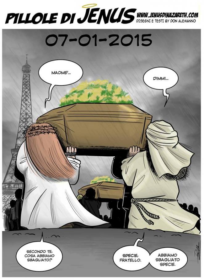 Per quanto possa sembrare ingiusto morire per una vignetta, e lo è in modo assoluto, possiamo reagire in due modi : in modo superficiale condannando il gesto e le futili motivazioni di chi lo ha compiuto, inchiodandoci solo ed unicamente al fatto fine a se stesso, oppure cercando di capire quello che sta accadendo e osservare l'atto come pezzo di un mosaico che definisce un quadro preciso con ragioni e motivazioni più profonde; in un modo sterilizziamo il tutto e non combattiamo realmente per tentare di capire e risolvere la situazione , nell'altro invece possiamo capire perchè accadono certe cose.