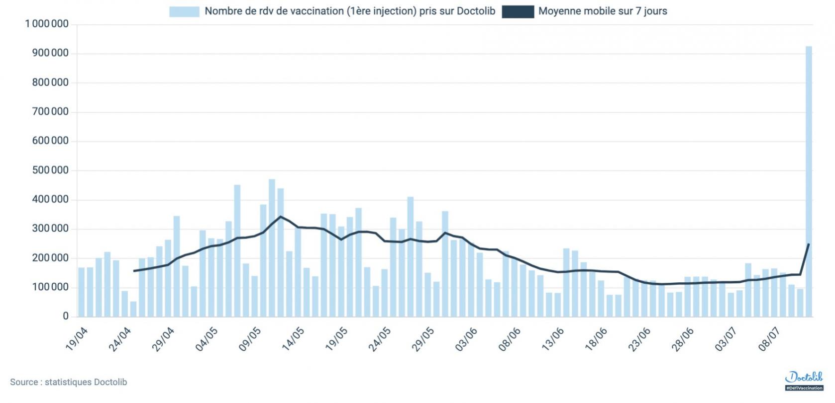 prenotazione per i vaccini la notte dopo il discorso di Macron sull'aumento delle restrizioni per i non vaccinati.