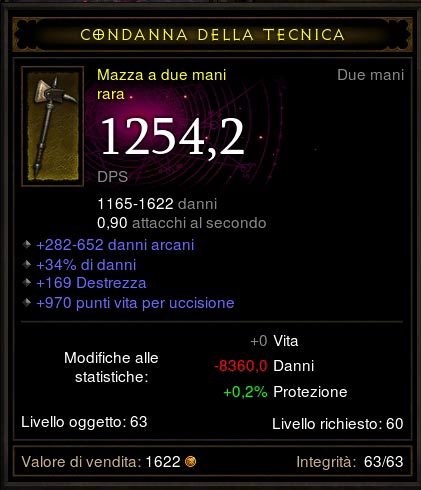 la mazza 2 mani il dps è ok, non ha socket, non da str, non da crit dmage, e non da att speed, oltre che hp on kill è la cosa piu inutile del gioco, dopo il range loot gold :nod: