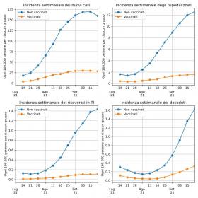 Si confrontano le due percentuali relative di incidenza, e dal confronto si capisce se e quanto funziona una terapia. In realtà andrebbe considerato un altro fattore correttivo, ovvero che le due popolazioni in studio (vaccinati e non vaccinati) non saranno omogenee, perchè abbiamo più veccinati nelle età e soggetti a maggior rischio, quindi questa analisi sottovaluterà l'efficacia dei vaccini, perchè il rischio di morire o andare in ospedale dei due gruppi non è omogeneo (maggiore nel gruppo vaccinati).