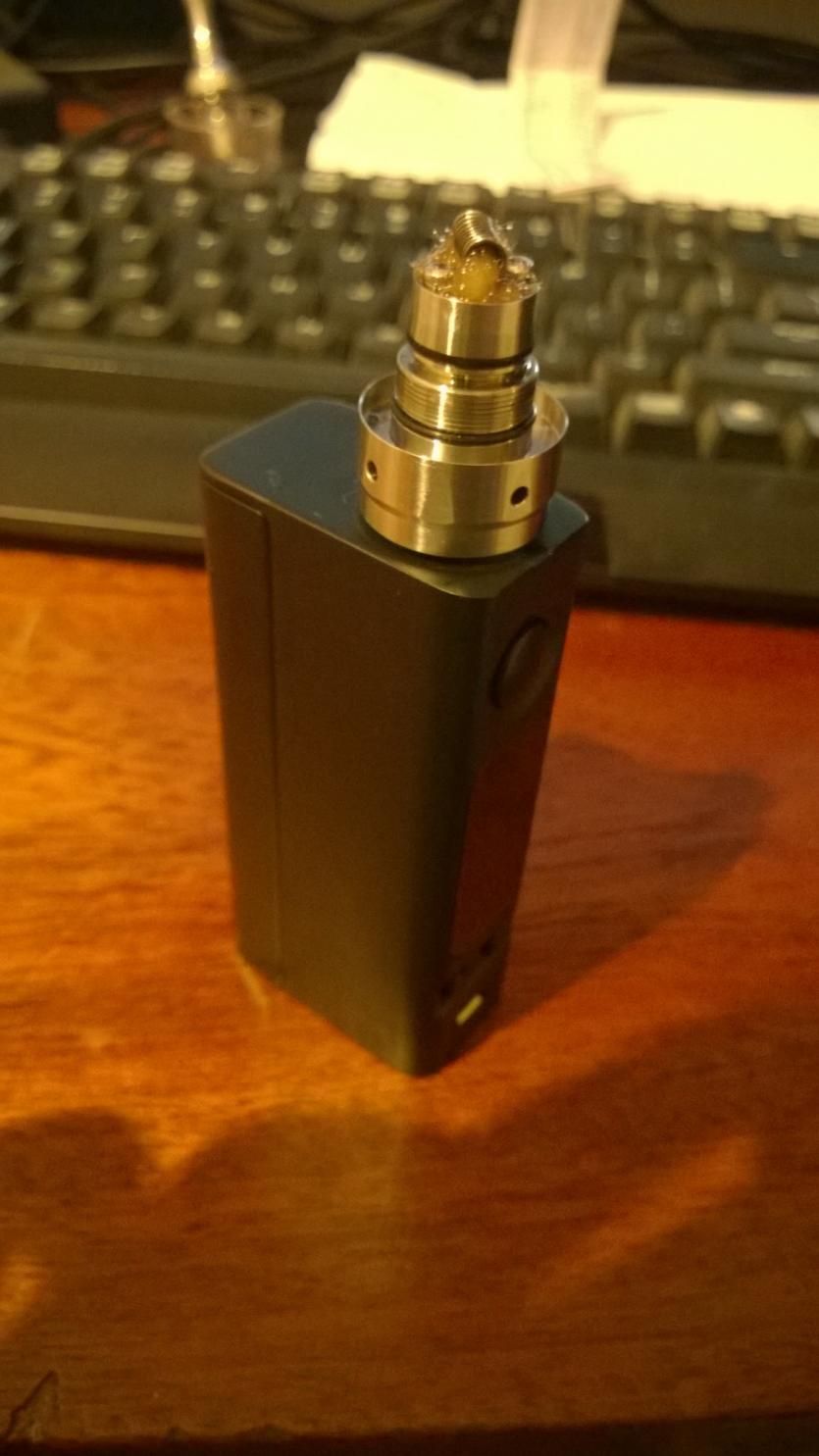 Conscio che possa comunque andare bene, prendo il cotone del kit (che e' in quadretti o_0) prendo un pezzo e ce lo infilo dentro. Bagno il tutto, carico il tank.