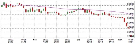 Tieni a mente però che se il prezzo dovesse scendere sotto la soglia dei 2Eur, probabilmente si avrà una ulteriore discesa non indifferente poichè quella dei 2eur è una resistenza psicologica ( il minimo storico 2k9 è gia stato superato).