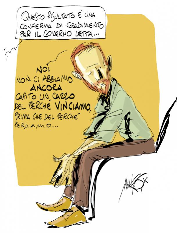 Un conto è la vittoria alla singola elezione, un altro è la costruzione di una base elettorale solida che ti consente di stare tranquillo. Il PD questa base elettorale solida la ha più del PDL di sicuro, ma ha avuto la possibilità di ingrandirla di molto grazie al fallimento del PDL e non lo ha fatto. Anzi ha perso voti in maniera costante. Il disastro è stato evitato, nelle regionali e comunali, dai singoli candidati - mi riferisco in particolare alla serracchiani, per marino non so ancora.