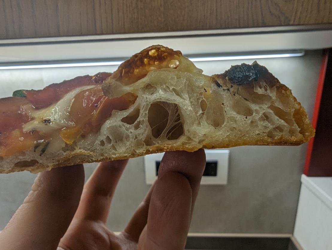 Fenomenale, è uscita meglio di quanto mi aspettassi considerando che sono andato a "naso" su tutto. Dal tipo di impasto al tipo/tempo di cottura.
