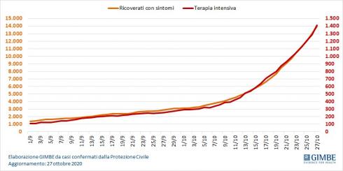 Passare da 300 a 1400 ricoveri in T.I. in praticamente 4 settimane, con un aumento della curva di questo tipo... e pensare ancora che ci sia un altro modo oltre il lockdown per salvare il salvabile (non tutto)...