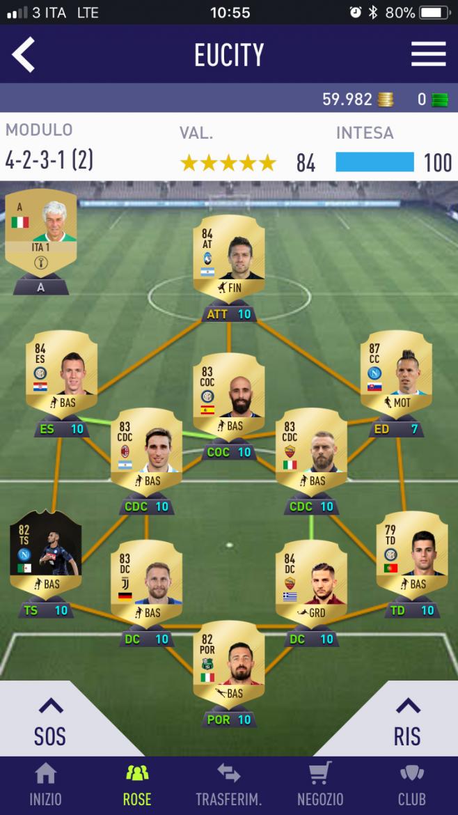 Cosa positiva posso upgradare ora il team, mettendo dentro Martial, G.Jesus (che va a sostituire Muriel che ha fatto un ottimo lavoro), Matuidi e Hamsik.